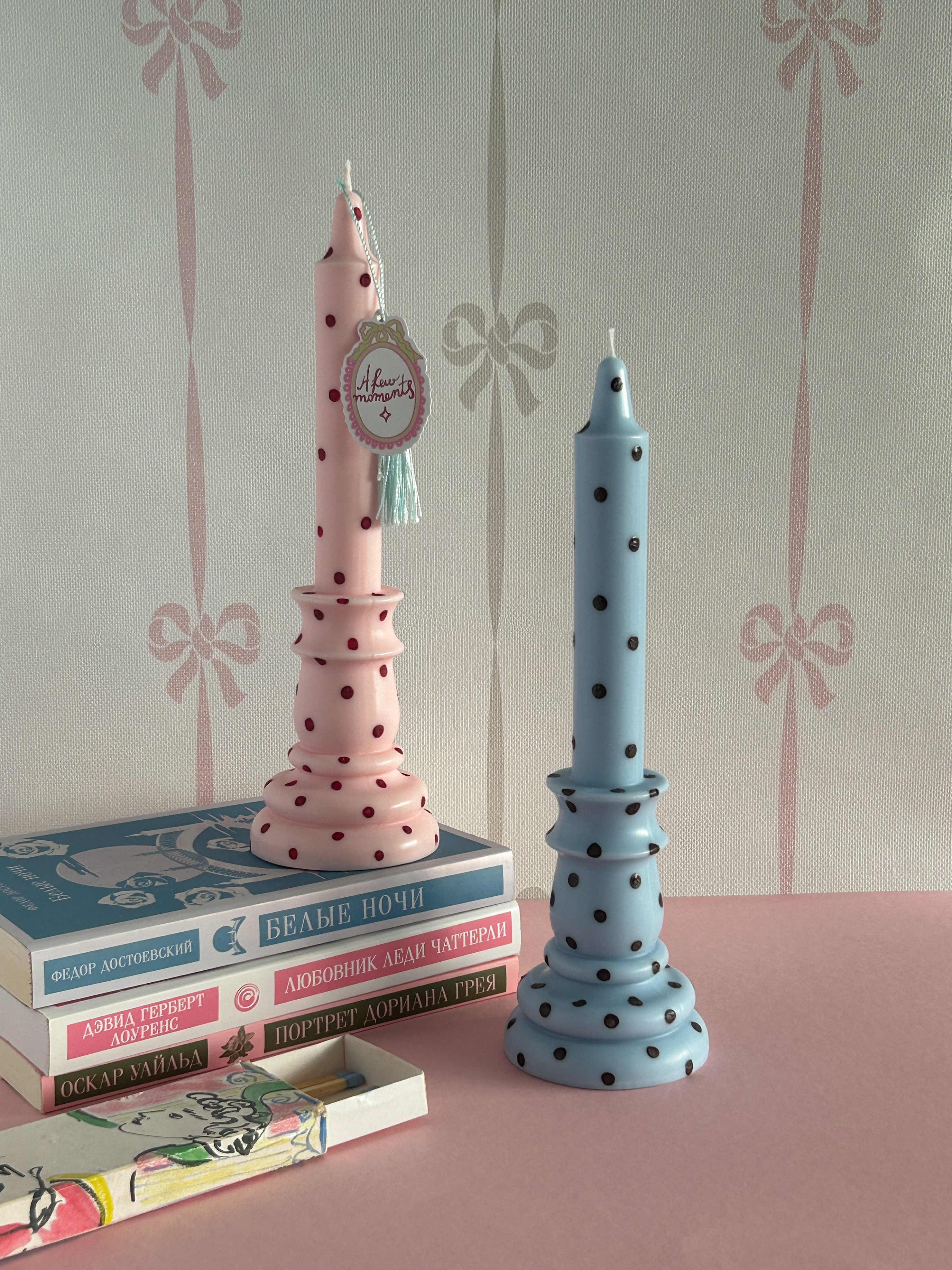 Интересная форма, трендовый принт и непривычный для нас цвет - это все про свечу античной формы Горошек.