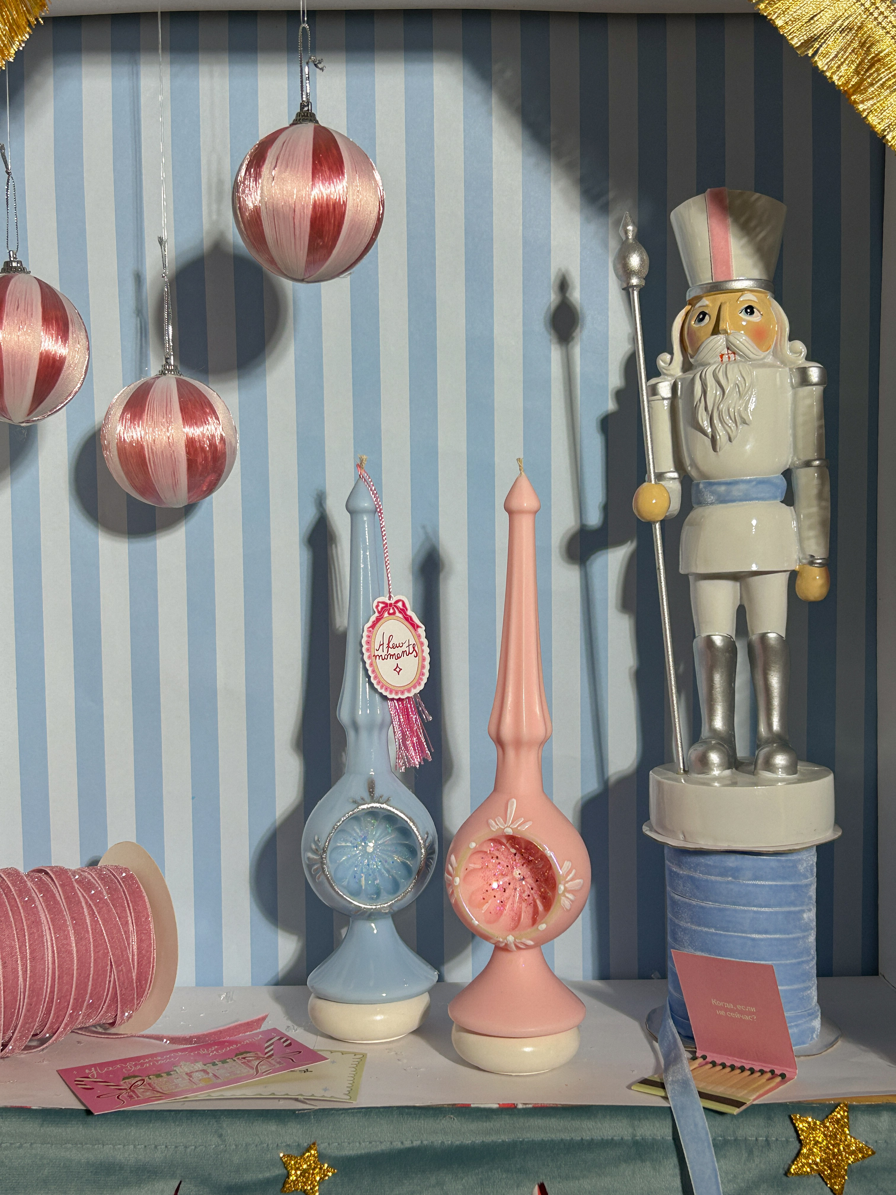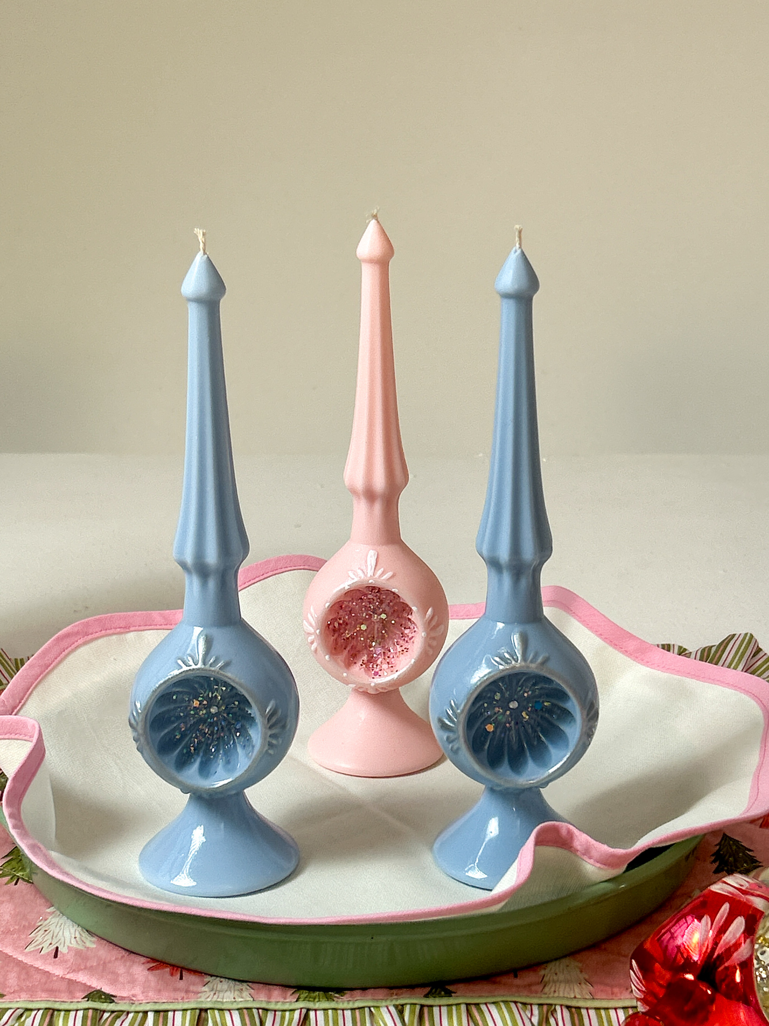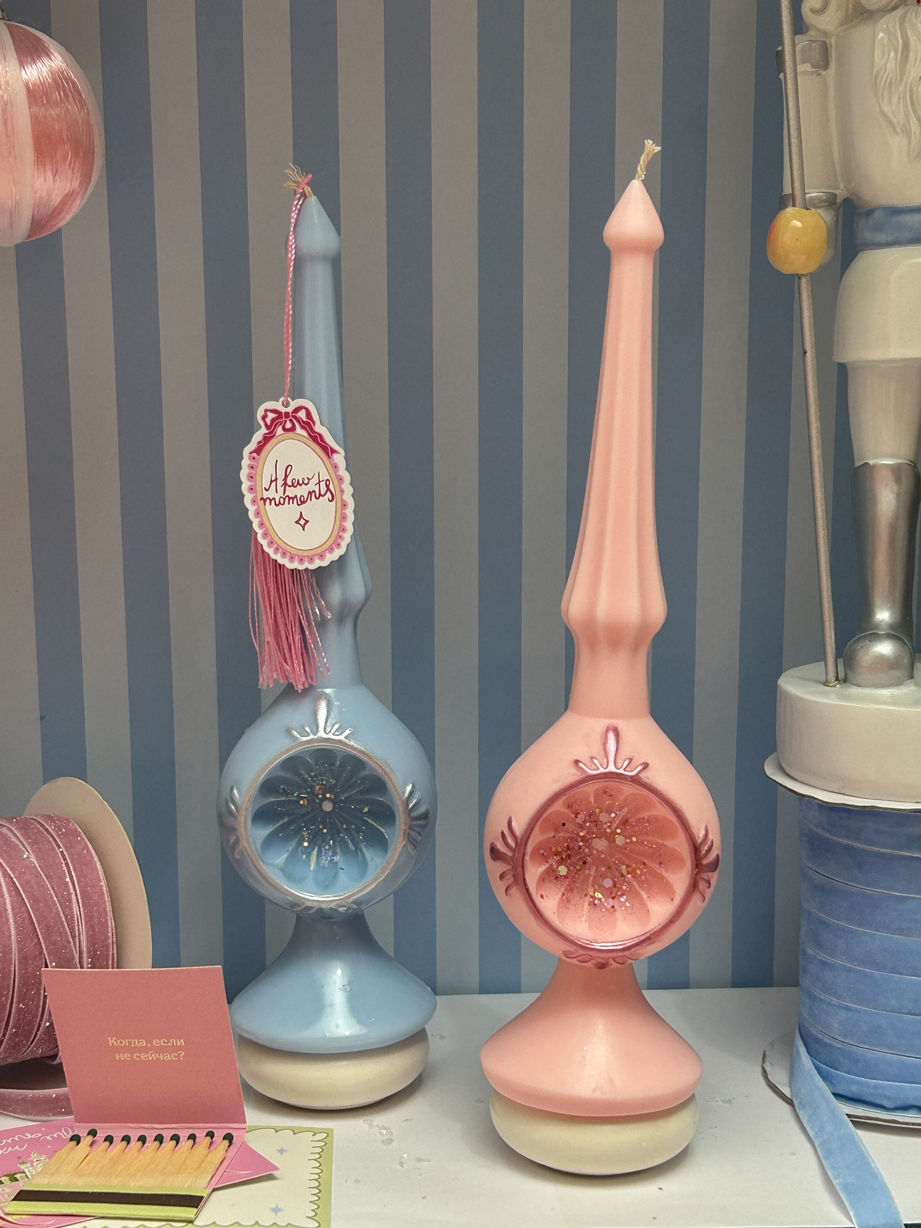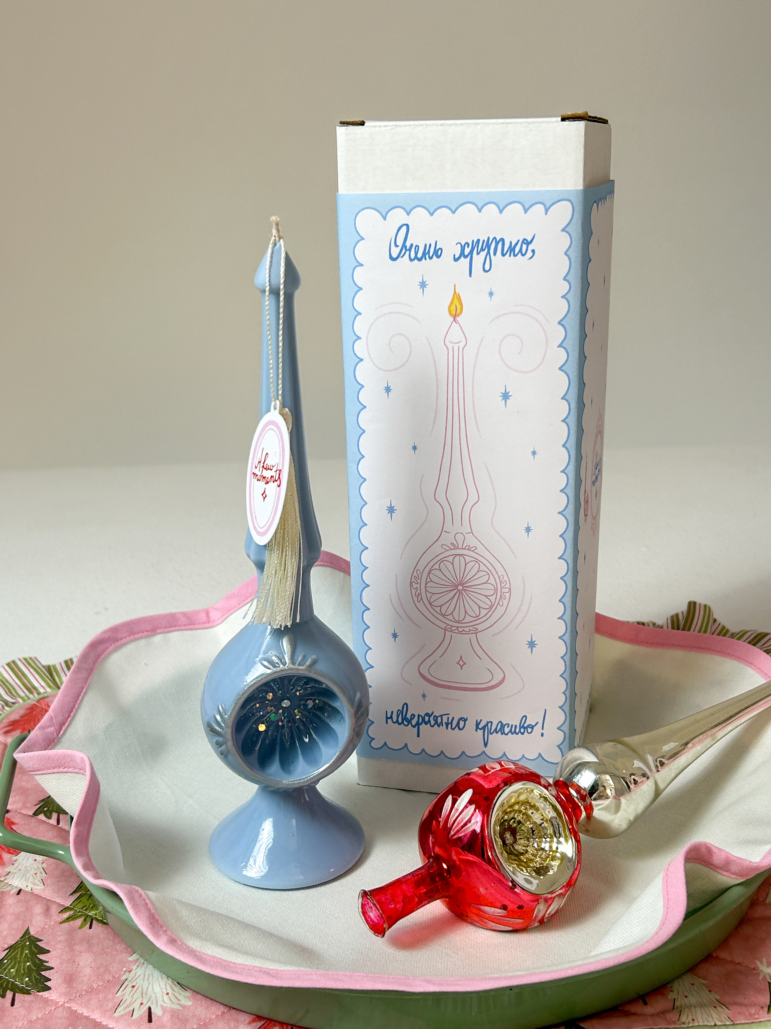 Самая главная красавица новогоднего праздника - конечно же елка. И мы понимали, что создавая коллекцию " Как из детства", обойти стороной верхушку на елку мы просто не могли. И создали по прообразу шпиля-прожектора нашу свечу верхушку на елку.